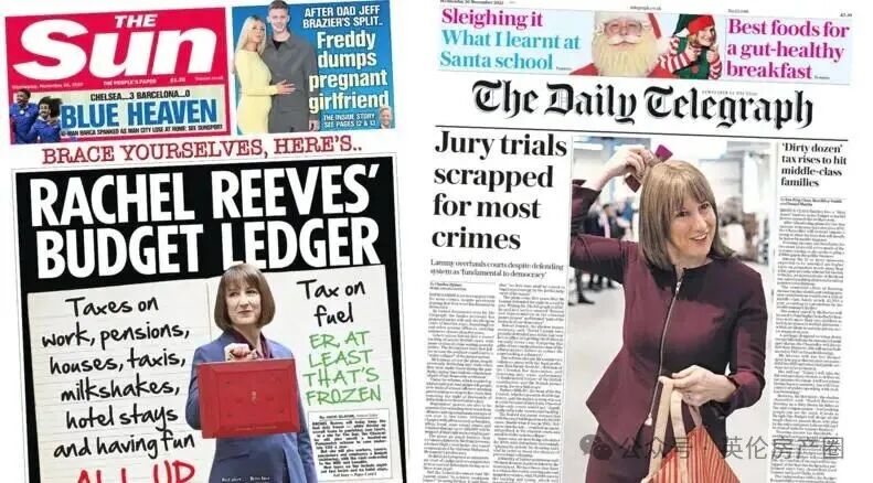 主要原因在于,各方传言都指向财相雷切尔·里夫斯(Rachel Reeves)可能再次推动“加税”,包括开征“豪宅税”、“租金税”等新税种,以弥补巨大的财政“黑洞”。