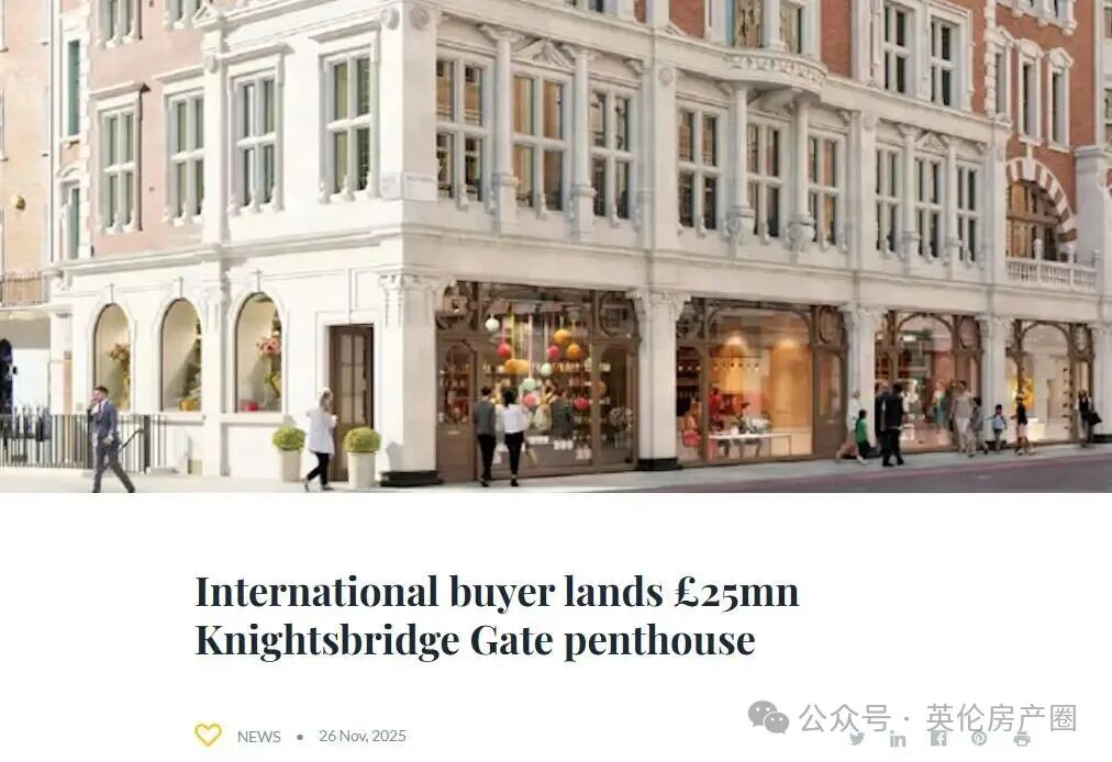 在预算案公布前,一套位于伦敦骑士桥,价值2,500万英镑的顶层公寓悄然成交,成为首都又一笔重要的交易。