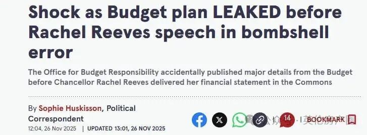 有趣的是,今天的预算公布过程也出现了一点“小插曲”,在里夫斯尚未讲话之际,独立咨询机构预算责任办公室 (OBR)就“无意”中提前泄露了报告内容。