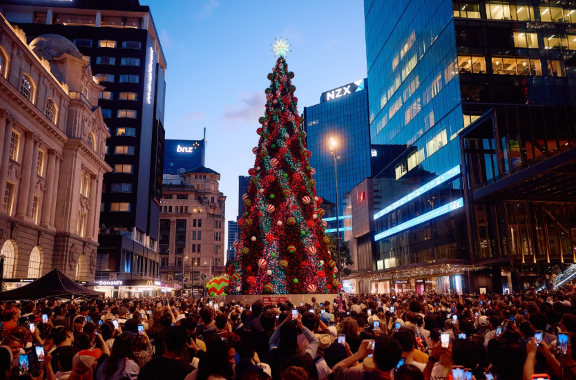 Britomart火车站前的巨型圣诞树“Te Manaaki”将展示至1月4日。