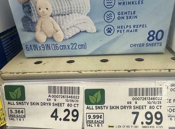 事件始于 10 月份,一名自称为克罗格员工的网友在 Reddit 上晒出店内货架照片:一盒 80 张装的烘干纸,10 月 8 日标价为 4.29 美元,仅一周后价格却变成 7.99 美元,涨幅高达 3.70 美元。