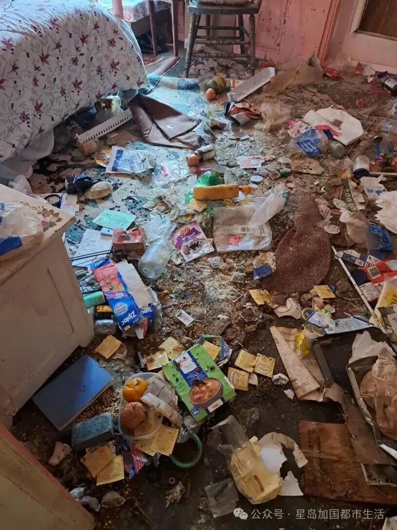 上月,她和丈夫离家数天,回来时发觉住所面目全非,场面一片狼藉。