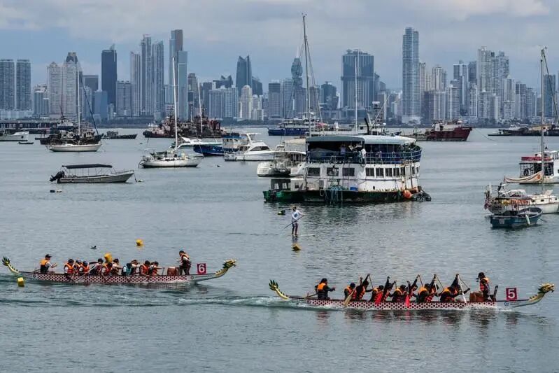 在巴拿马,退休签证只要求月收入达1000美元即可申请。图为华人团体在巴拿马市的阿玛多堤道举办龙舟大赛。(美联社)