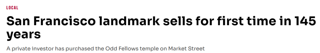 据房地产服务公司Colliers周一发布的新闻稿称,这座原为旧金山“独立怪杰会”(Independent Order of Odd Fellows)旧金山分会的建筑,已被一名私人投资者购得。《旧金山商业时报》率先披露了这笔交易。