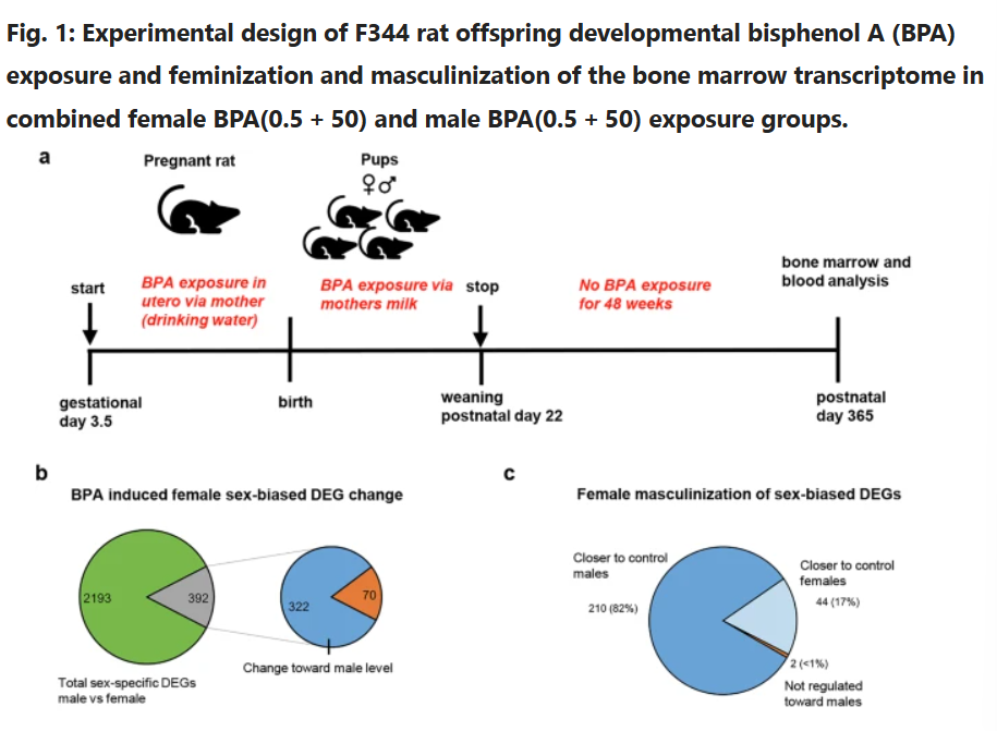 通过母体血液循环,还在子宫里的子鼠会接触到双酚A。研究证明,无论接触到的双酚A剂量高低,这些子鼠的骨髓基因和血液代谢都发生了显著变化。