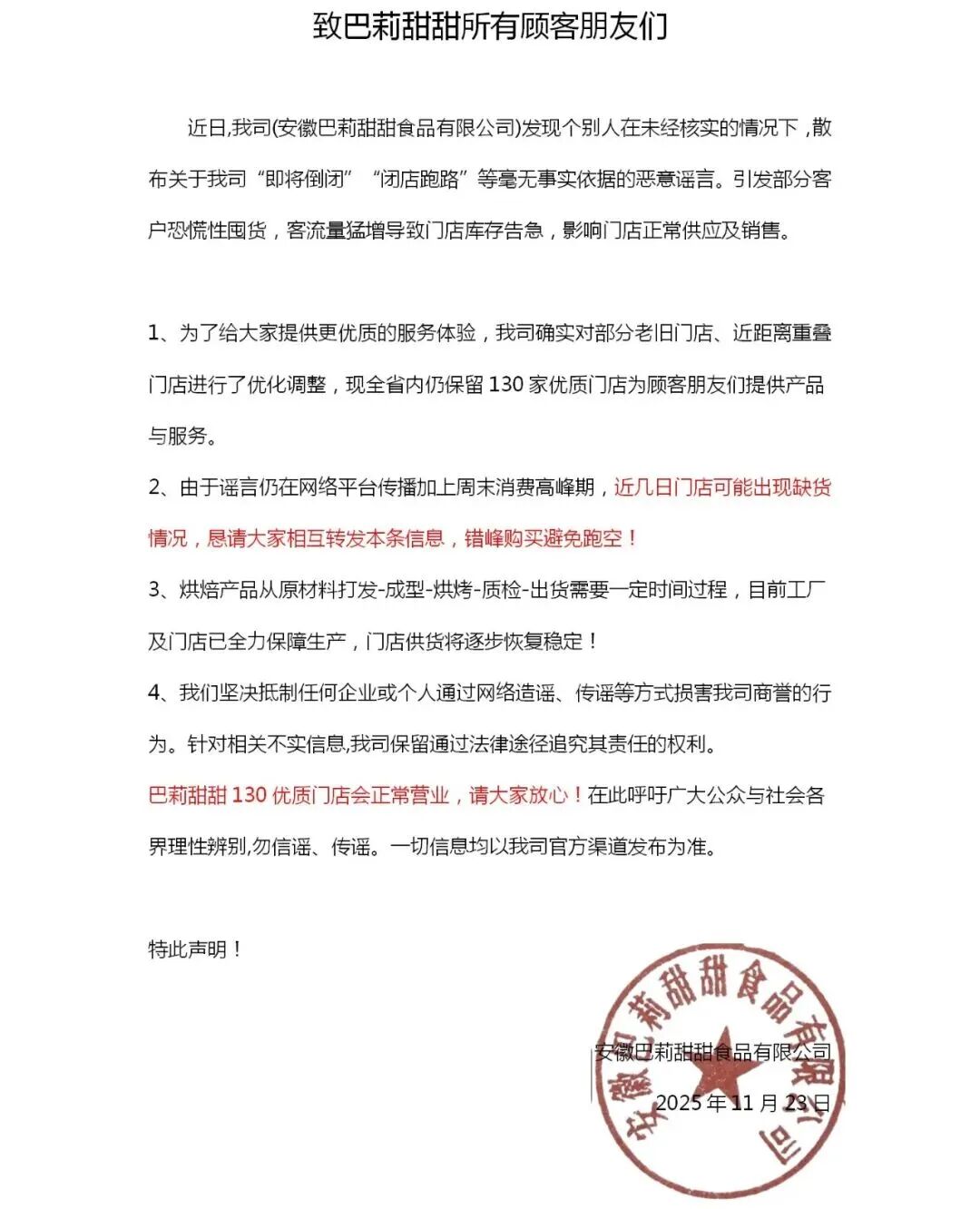只不过,这封信依然没有打消大家的顾虑,随着附近一家家巴莉甜甜门店拉闸,消费者的心也越来越慌。