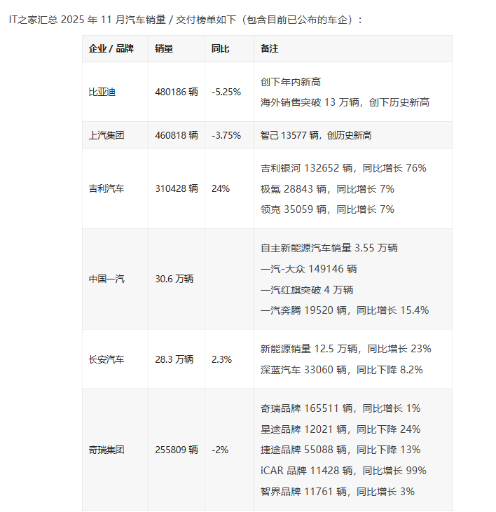 那传统大车厂呢?比亚迪继续一马当先,狂卖48万辆,上汽卖了46万辆,吉利紧跟其后,交付31万辆,奇瑞也卖了25万辆。中国第一大车企,基本成了上汽与比亚迪之间的两龙争霸。考虑到当前,国内市场已经十分饱和。未来,谁能稳居第一?就更看海外出口量了。