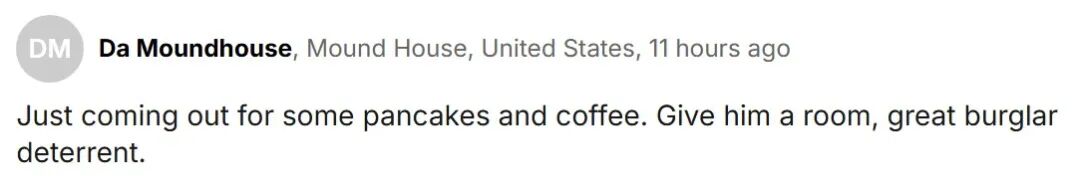 “请它出来吃点煎饼喝杯咖啡吧。再给它安排个房间,能有效震慑窃贼。”