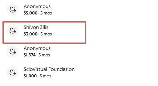 众筹是今年6月发起的,到11月,已经筹到了超过2万美元,其中第二大的一笔是3000美元,来自一位Shivon Zilis。