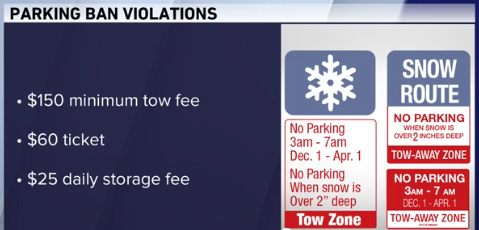 该禁令涵盖 107 英里的主要街道,从 12 月 1 日至 4 月 1 日,每天凌晨 3 点至早上 7 点执行,无论地面是否有积雪。