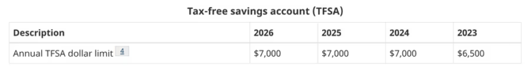 这意味着如果您已用完2025年免税储蓄账户(TFSA)的供款额度,则2026年您可以再供款7,000加元。