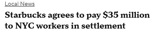纽约市官员称,这是本市历史上规模最大的劳动者权益和解案,且正值星巴克部分门店工会员工罢工之际。