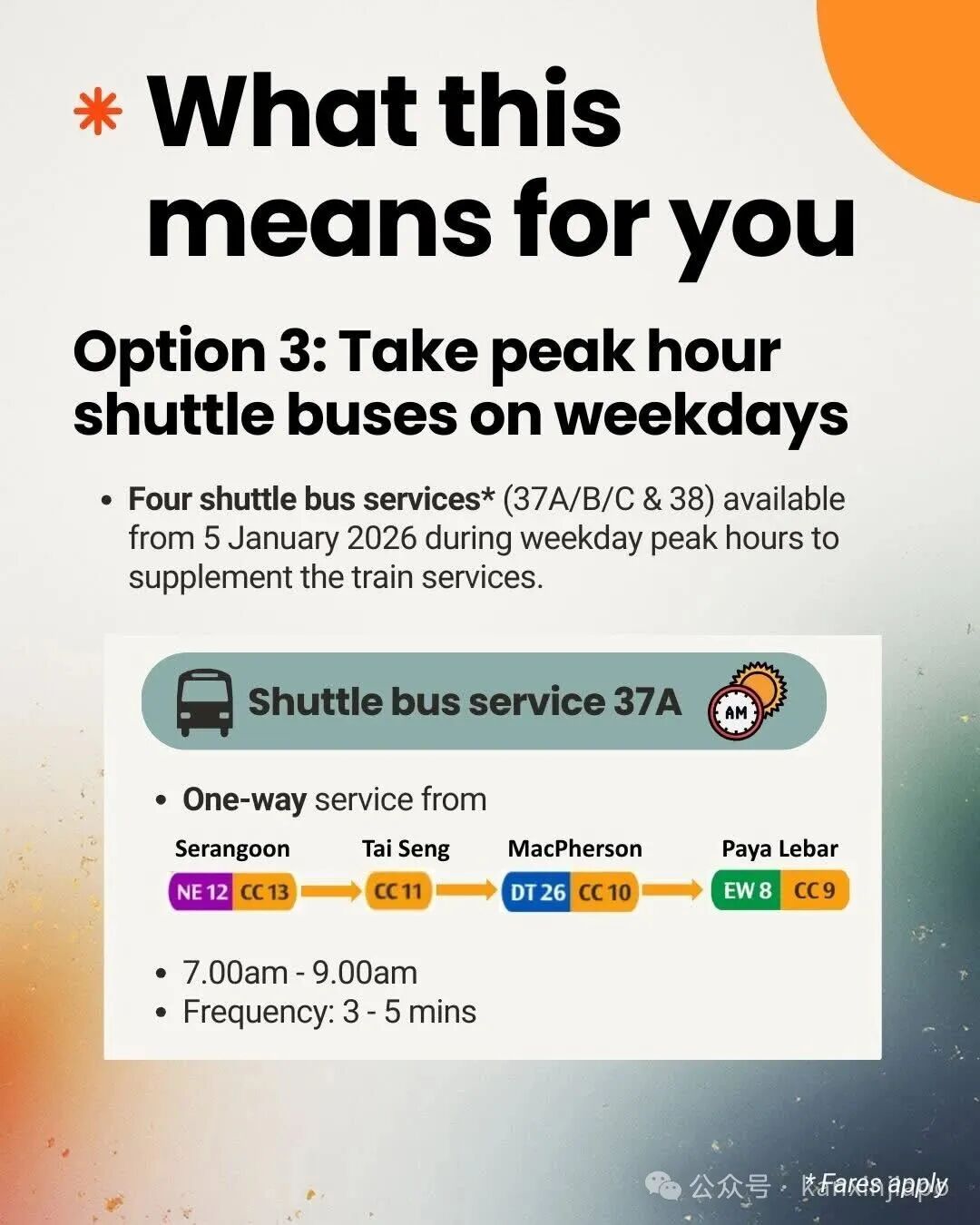 为了让大家提前熟悉路线,四条接驳巴士会从 1月5日起先行上路,收费和搭地铁一样。