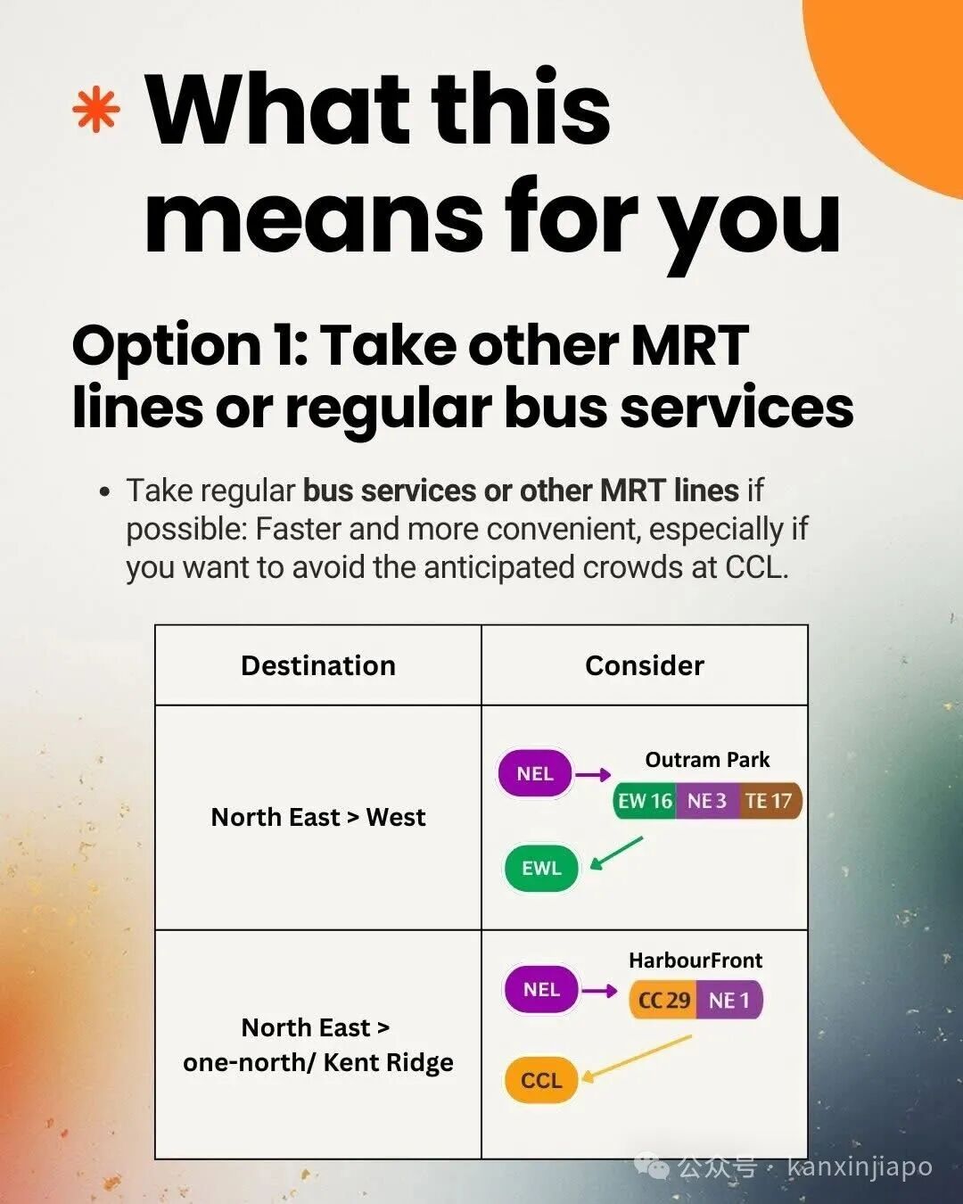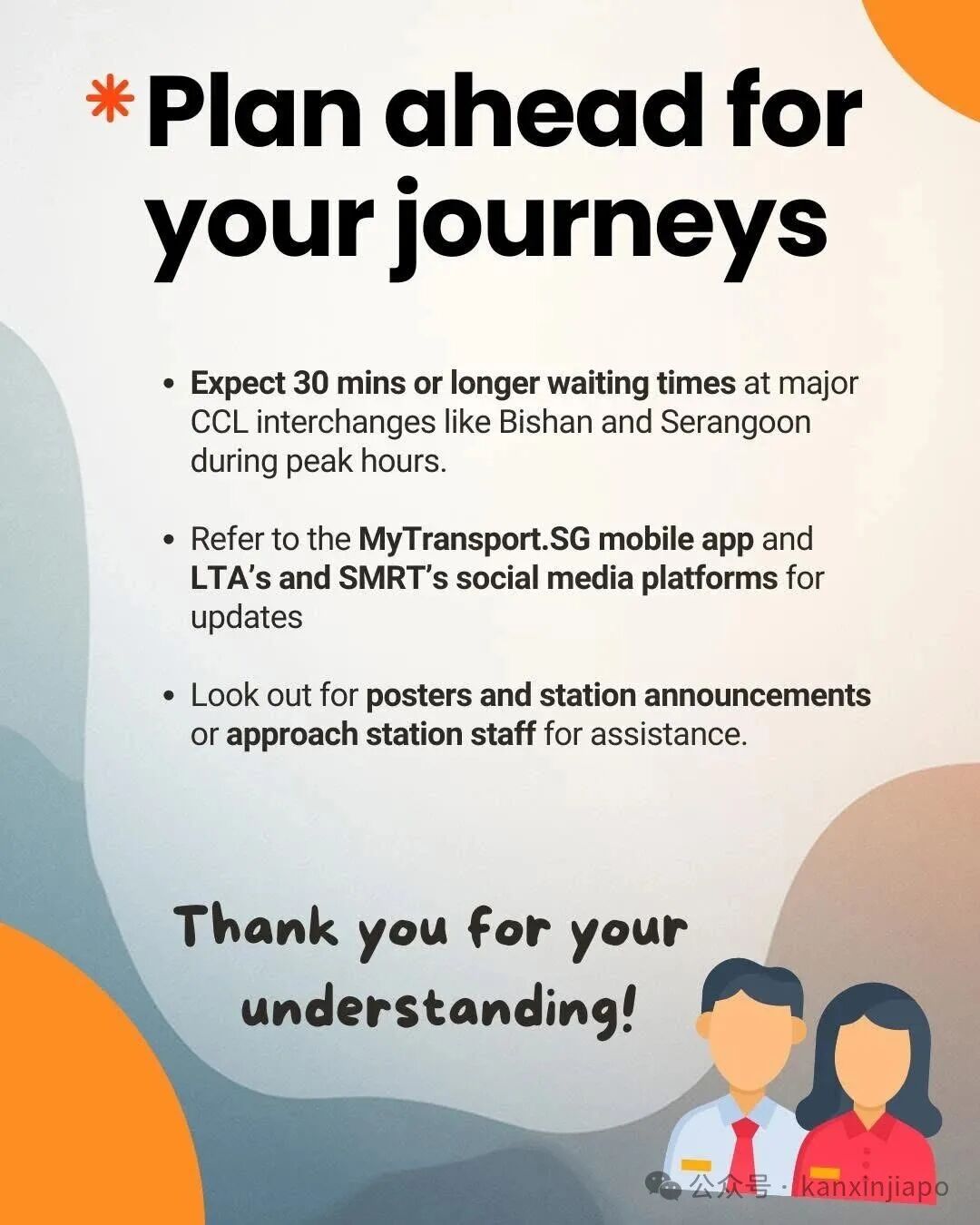 乘客也能搭乘普通巴士绕过受影响路段。最新消息可查看 LTA、SMRT 社交平台和 MyTransport.SG 应用,地铁站也会有 SMRT 人员现场协助。