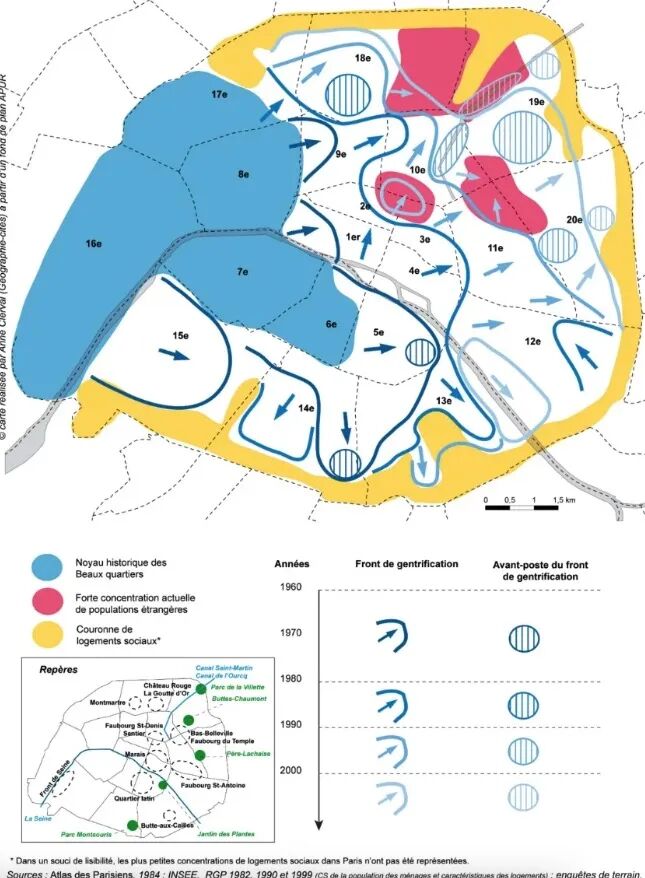 对城市本身来说,kebab与炸鸡的分布画出了一个“隐形版巴黎”:哪里在绅士化,哪里在被挤出中心,地图上一目了然。