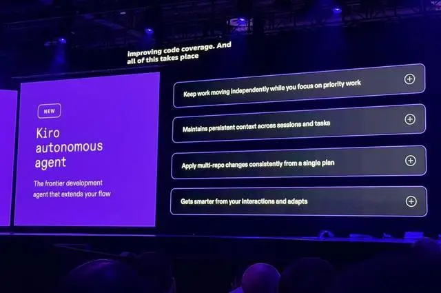 为了进一步加强开发流程的自动化程度,亚马逊云科技发布了全新的三个前沿智能体,让Kiro在自主性、大规模可扩展和长期运行等领域的表现进一步增强。