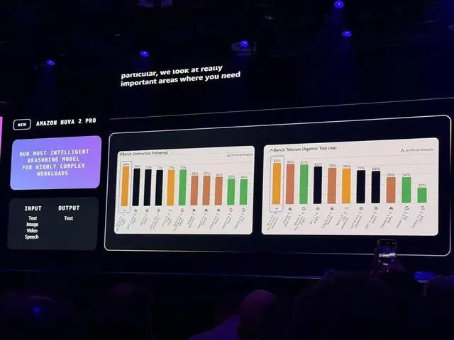 Nova 2 Omni是Nova系列的新物种,也是业界首个支持文本、图像、视频和音频输入,并支持文本和图像生成输出的推理模型。不过,亚马逊云科技尚未公布其基准测试成绩。