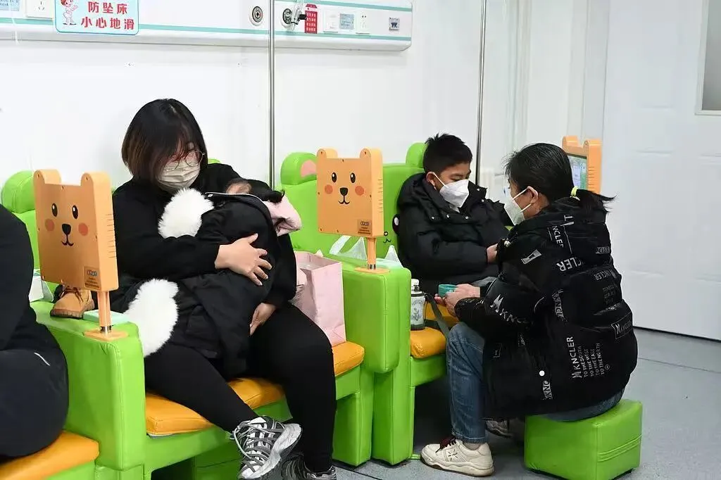 2025年12月1日,内蒙古医科大学附属医院儿科,家长陪儿童候诊流感。摄/中新社记者 刘文华