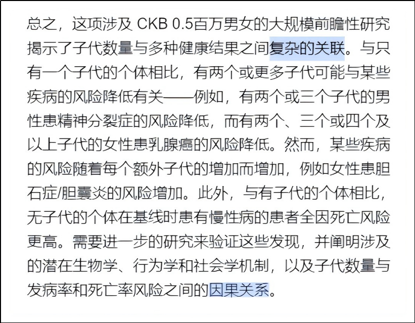 而且论文也说了,子女人数和健康关系复杂,不是越多越好或越差,有的病风险降,有的升。