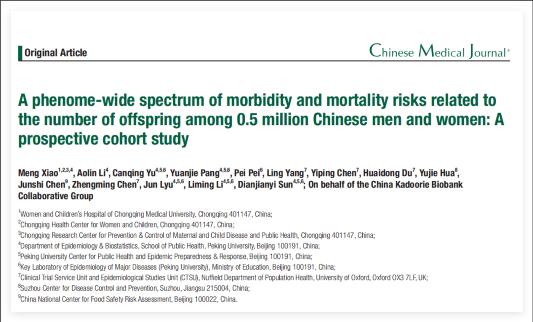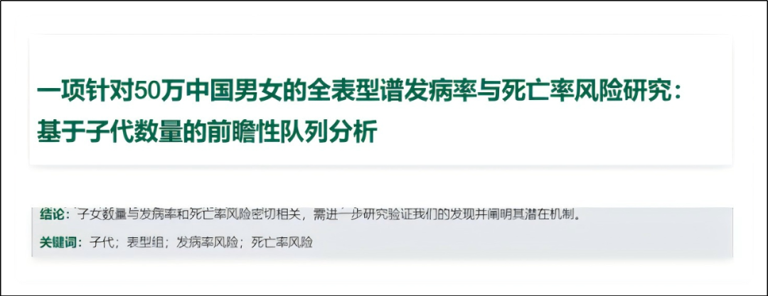 1最近上热搜的文章很多。其中一篇是北大公共卫生学院的学者写的,叫:《基于50万中国男女的前瞻性队列研究:子嗣数量与全表型疾病及死亡风险的关联谱》