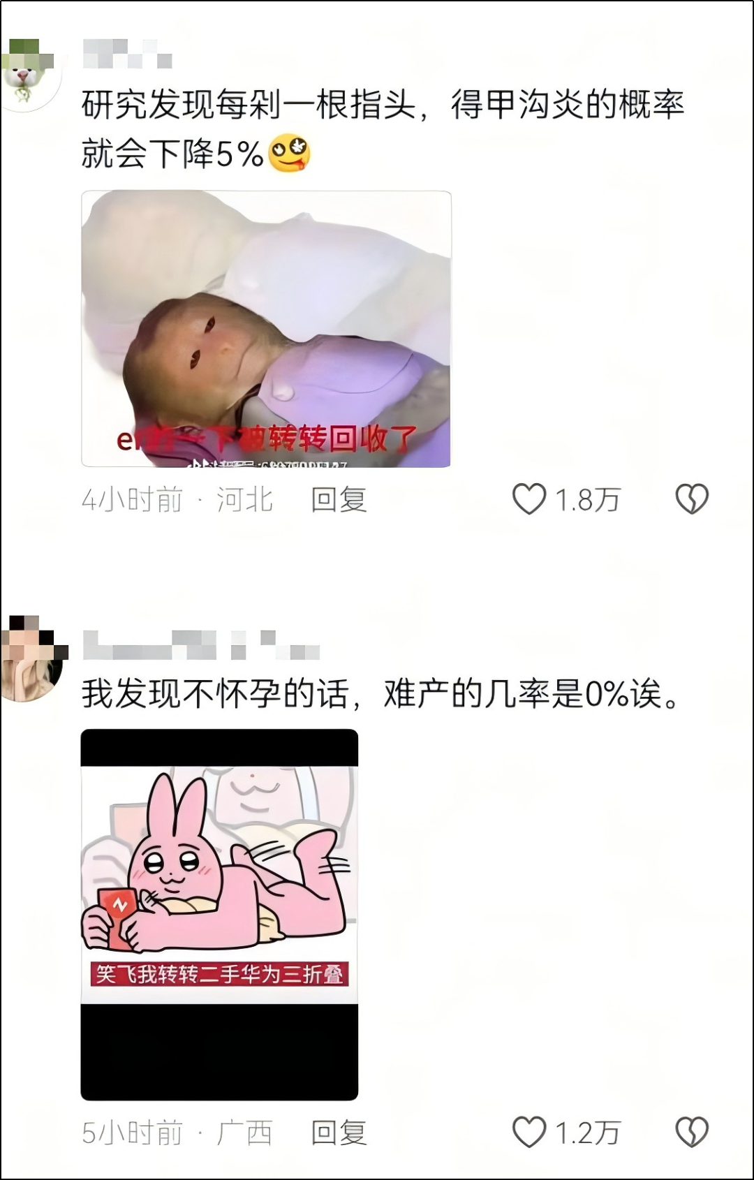 有人说,按你的理论,每剁掉一根指头,得甲沟炎的的概率就会下降5%。