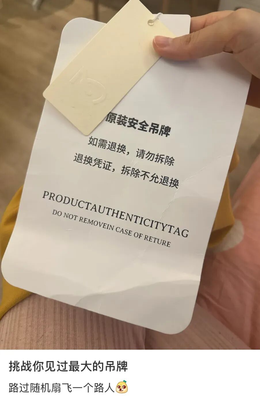 这浮夸的巨型吊牌,防的就是那些不剪吊牌、想靠“7天无理由退款”来白嫖新衣服的人。