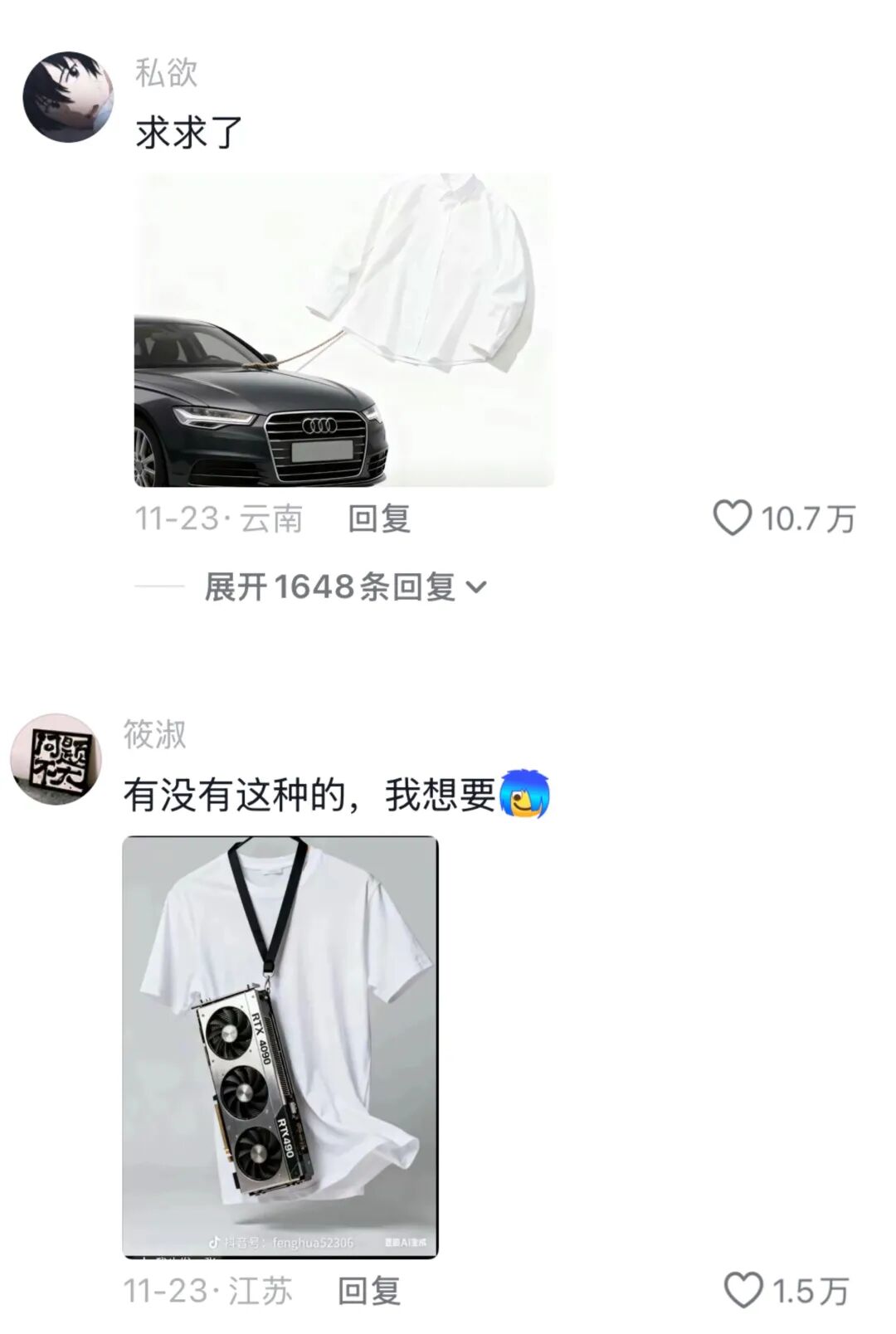以至于现在的一些男装账号下面已经变成了大家的许愿池,趁势考验卖家的真心。