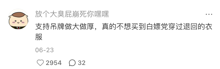 但是对于更广义的消费者来说,白嫖并非他们的赛道,退货更是事出有因。