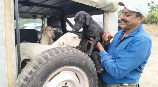 Sunil和妻子Nagini喜极而泣,非常感谢村民、工作人员和狗狗的努力。