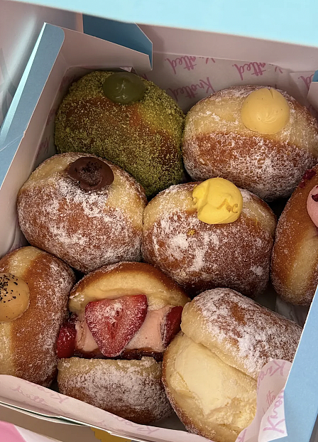 多种口味可选(抹茶、迪拜巧克力、伯爵茶、柠檬凝乳、奶霜草莓),而且口感异常轻盈——让人轻易就能瞬间吃下三个甜甜圈。