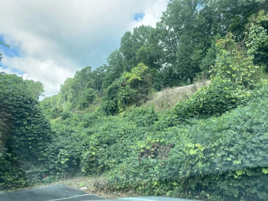 先来看一张我在美国乔治亚州的郊区随手拍摄的一张图片:生活在南方的朋友,可能对于这种树木茂盛、藤蔓缠绕的景象早就习以为常了。然而,我却感受到了一种极大的震撼——图中的树林,几乎完全被同一种藤本植物所霸占。
