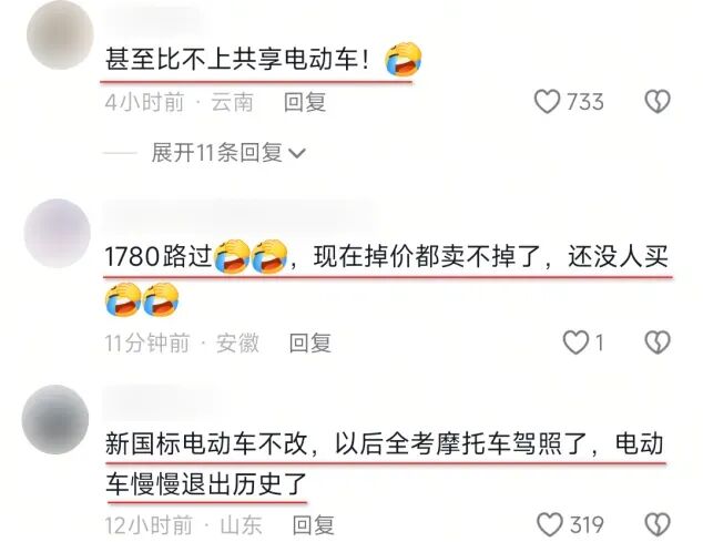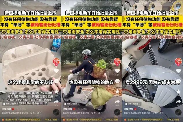 要了打工人狗命的,还有——价格!某电动车商家:“像这样简易款的电动车,我们正常是卖1700多元。但是,一旦要按照新国标标准生产的话,得卖2999元,因为它的成本太高了。”2999元?我还是骑共享单车吧,能包14年月卡呢。说不定,到时候就不用上班了。(bushi)