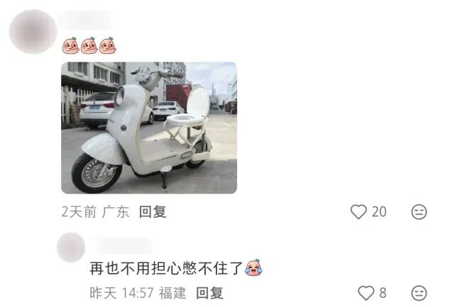 你看看,让孩子睡踏板上,自己再背个箩筐,问题不就解决了?(狗头.jpg)如果你肠胃不好,直接后座放个马桶,随时随地自由飞“翔”: