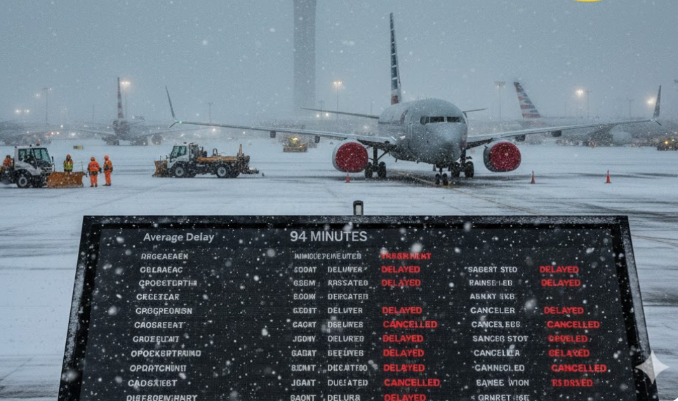 严重延误: 此外,奥黑尔机场全天实施地面延误(Ground Delay),预计平均延误时间高达 94 分钟。