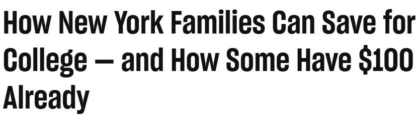 如果你的孩子在纽约市公立学校就读四年级或以下,他们很可能已经有一个大学储蓄账户。为什么?因为自2021年起,“NYC Kids Rise”(纽约儿童成长基金)开始为所有幼儿园新生开设账户,并自动存入首笔100美元。