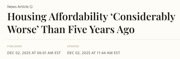 牛津经济研究院(Oxford Economics)最新报告显示,尽管近期房价涨幅略有放缓,但美国的住房负担能力较五年前“明显恶化”。截至2025年第三季度,美国普通家庭购买一套独立住宅所需的中位年收入已攀升至11.01万美元,几乎是2020年同期58,400美元的两倍。《新闻周刊》报道标题