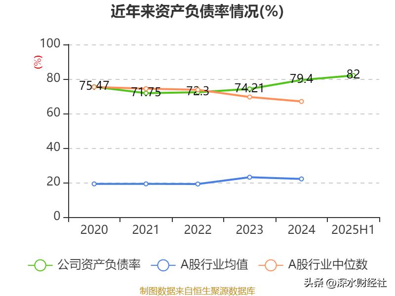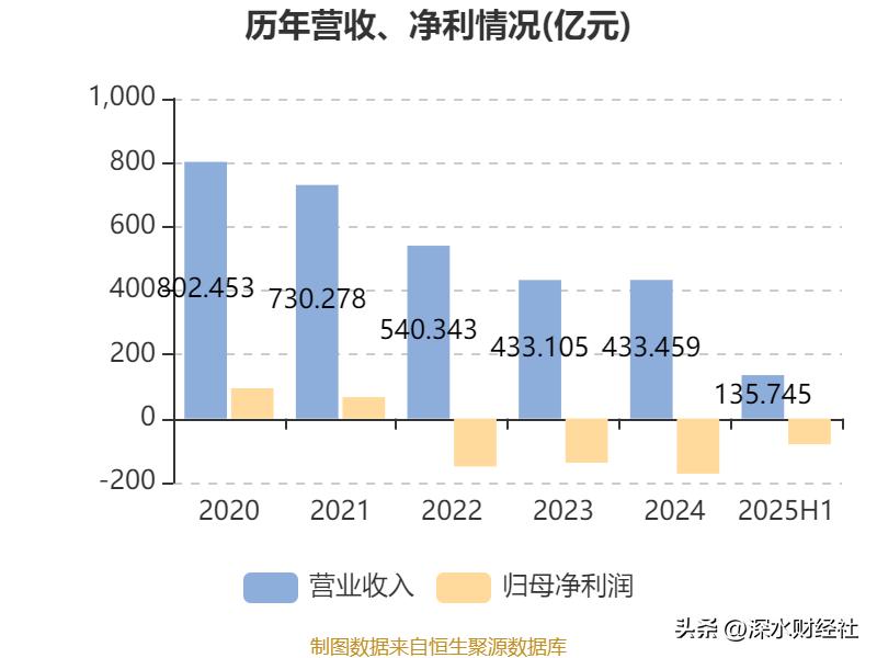 2025年上半年,公司经营活动现金流净额由2024年的13.66亿元正流入,转为-13.04亿元净流出,仅靠12.80亿元的投资活动现金流支撑,融资渠道基本被堵死。