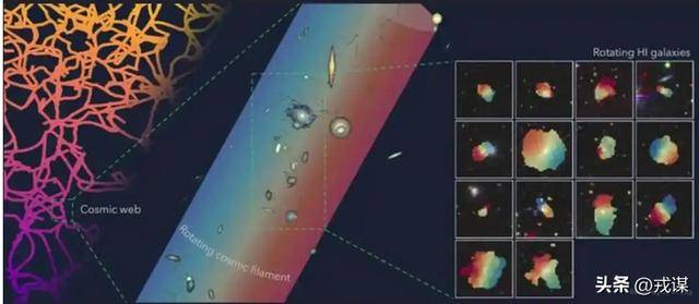 最颠覆认知的是“双重旋转”——每个星系自己转得像陀螺,整个长丝平台还带着它们每秒110公里的速度甩圈,就像游乐园茶杯,杯子自转,底盘也转,这操作直接给天文学家整兴奋了:之前猜星系自转是“自学成才”,现在看分明是“接盘”了长丝的“技能包”。