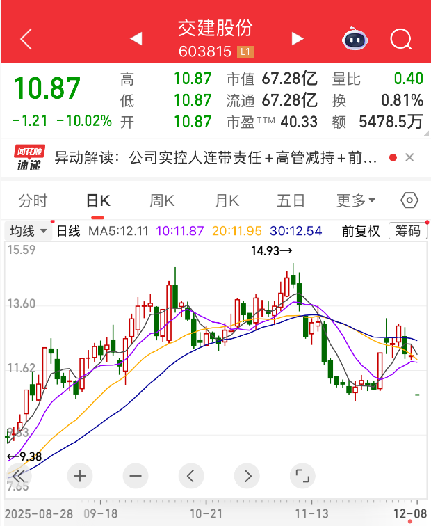然而,12月8日,三家公司股价依旧没稳住,截至收盘,交建股份一字跌停。