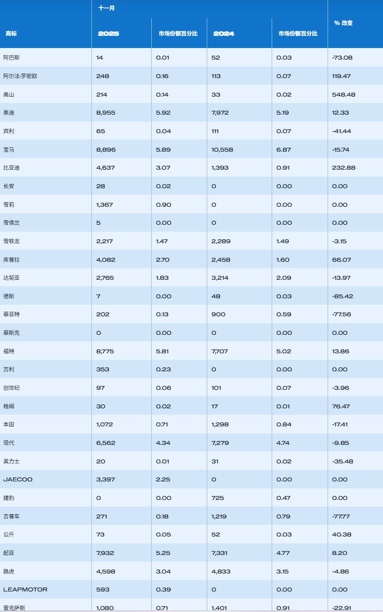 9 月,比亚迪英国的销量飙升了 880%,11271 辆直接成为比亚迪海外第一大市场,也第一次进入了英国月榜前十。