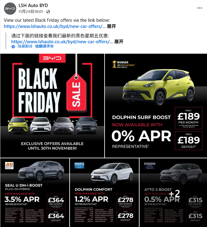 要知道,现在全球经济都不太好,英国买车贷款利率基本在 6%-10% 之间。比亚迪在这个节骨眼上搞 0 息,简直就是降维打击。