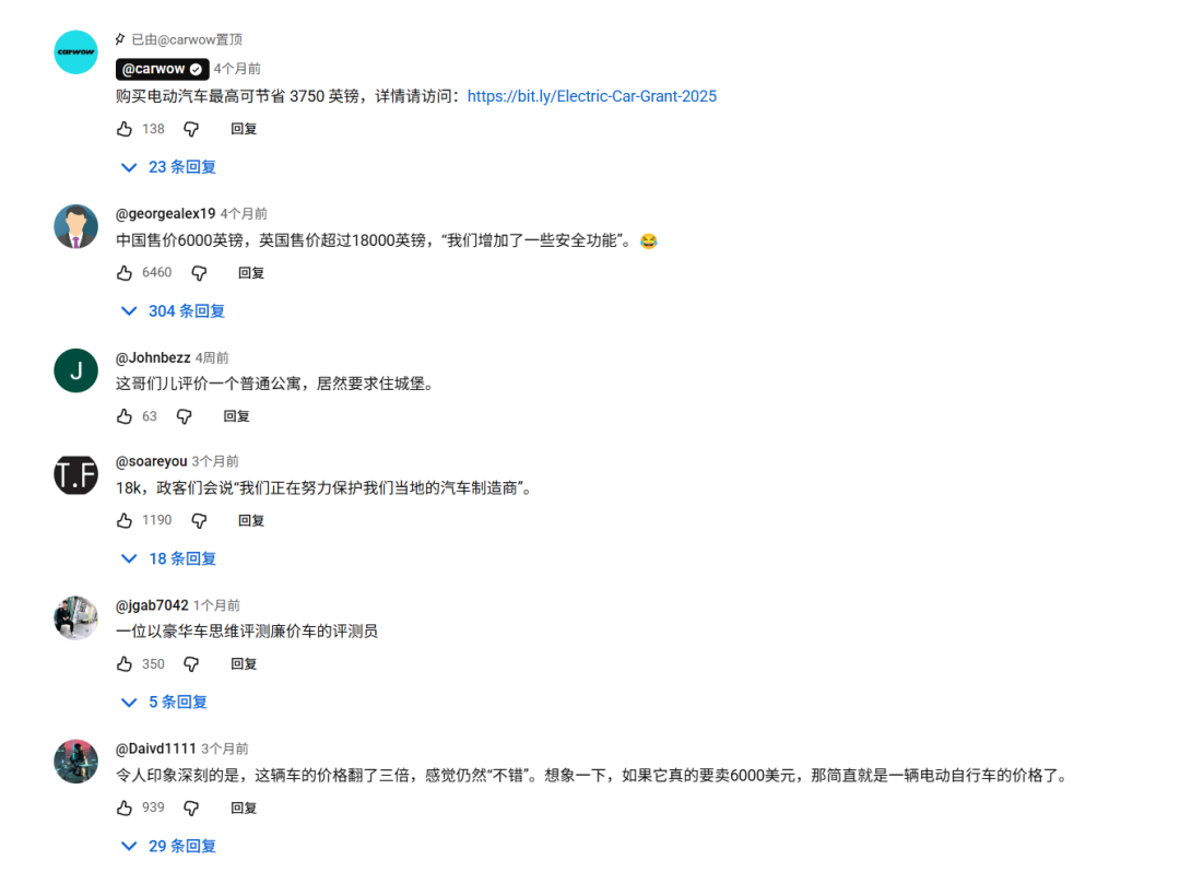 所以,今年年初欧盟在那因为加收中国车关税问题吵得要死要活的时候,对英国基本没啥影响。