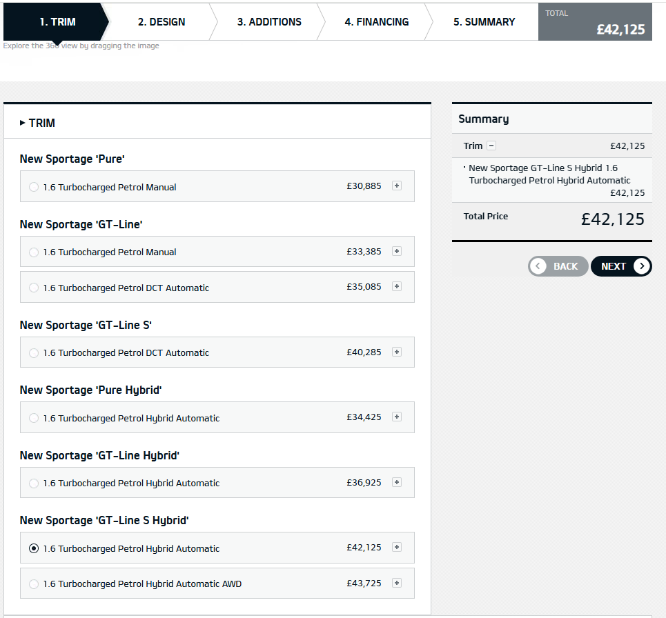 我们看看竞品。直接用同样打着性价比标签的韩国起亚吧,Sportage 狮跑,30885 镑起售,最低配的版本是手动挡,直接排除。