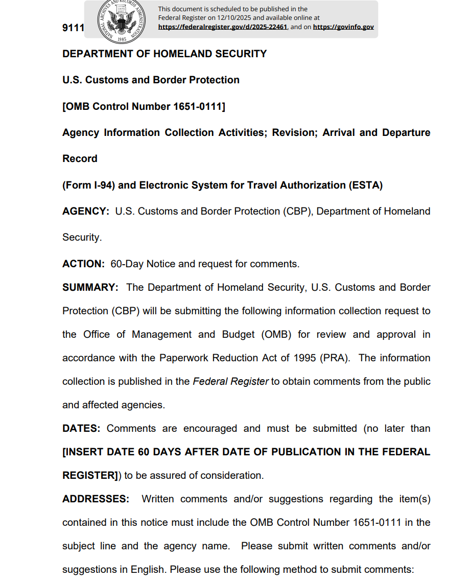 新规将经过60天公众意见征询期,并由白宫管理与预算办公室(OMB)进一步审核。若获批准,CBP将在随后的数周与数月陆续实施。