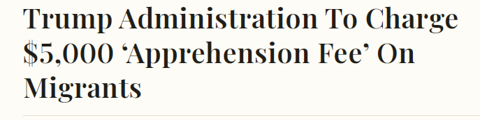 一名边境巡逻队高级官员宣布,川普政府将对无合法身份的移民征收5000美元“拘捕费”。报道截图