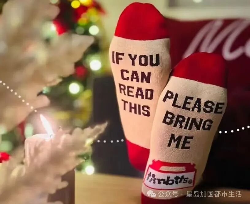 每份套餐还将附赠一双可爱的Tim Hortons主题袜。共有3种款式可供选择,每双袜子都藏有隐藏信息:一只袜子的鞋底印着“如果你能读懂这句话”,另一只袜子的鞋底则分别印着“请帮我带Timbits”、“请帮我带咖啡”或“请帮我带甜甜圈”。