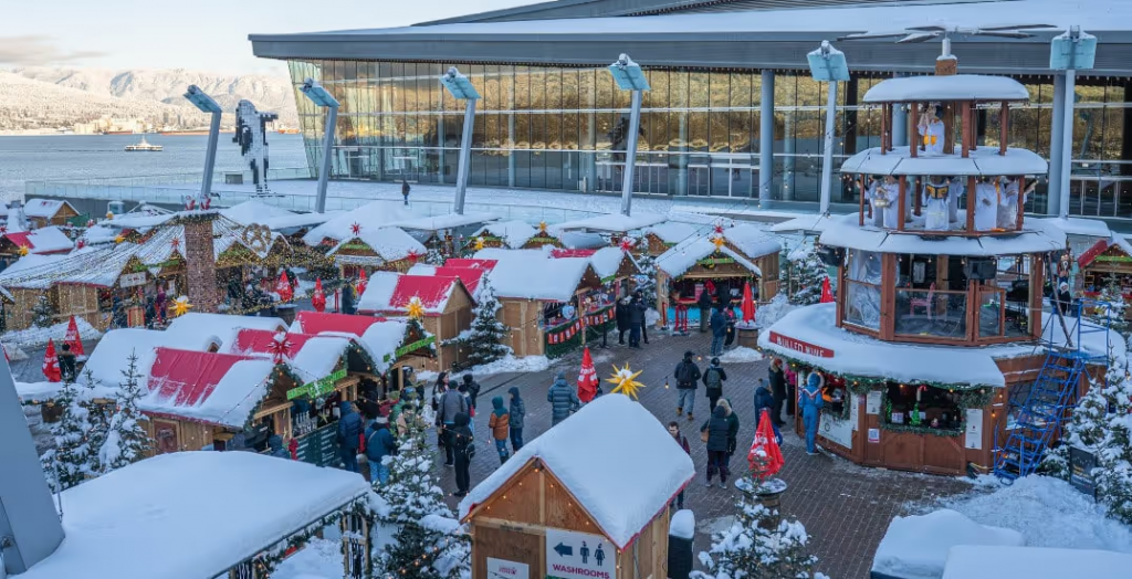 另外千万不要错过位于温哥华市中心的温哥华圣诞集市(Vancouver Christmas Market),这个火爆的圣诞市场深受温哥华当地民众和游客的喜爱,这里有 90 多个小屋(摊位),出售正宗的德国糖果点心、手工艺品、装饰品等,是购买圣诞礼物的好地方。