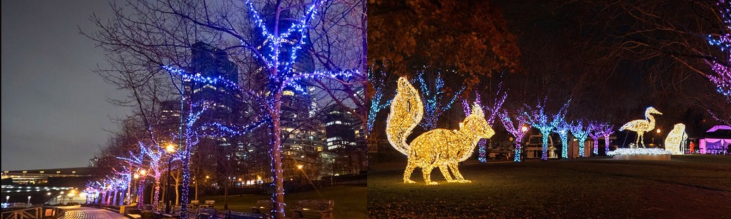 或是在夜色中漫步到煤港(Coal Harbour),将会看到一系列绚丽多彩的灯光装置。 从加拿大广场(Canada Place)出发,沿着煤港海堤(Coal Harbour Seawall)一直到Cardero 公园,沿途将有 120 多棵彩灯装饰的发光的树木,为这段海滨之路营造出梦幻氛围。