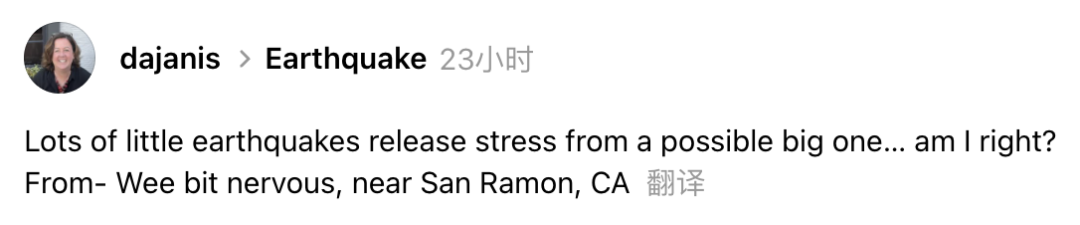 似乎为了让湾区居民更加不安,周一下午2点55分,奥克兰(Oakland)蒙特克莱尔(Montclair)社区附近又发生了一次2.9级地震,震中靠近海沃德断层(Hayward fault)。