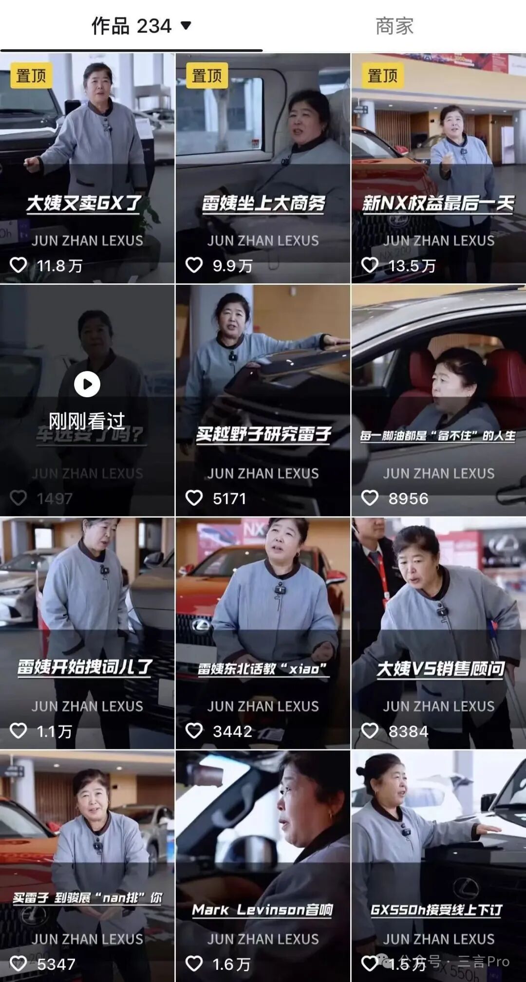 美女擦边不好用?现在豪车们都开始用保洁大妈卖车了。某豪车品牌经销商的短视频账号已经被保洁大妈霸屏了。“老板你喜欢吗”,这是保洁大妈的标志性话术,偶尔说话还有点卡壳,一口土味东北话确实反差感极强。